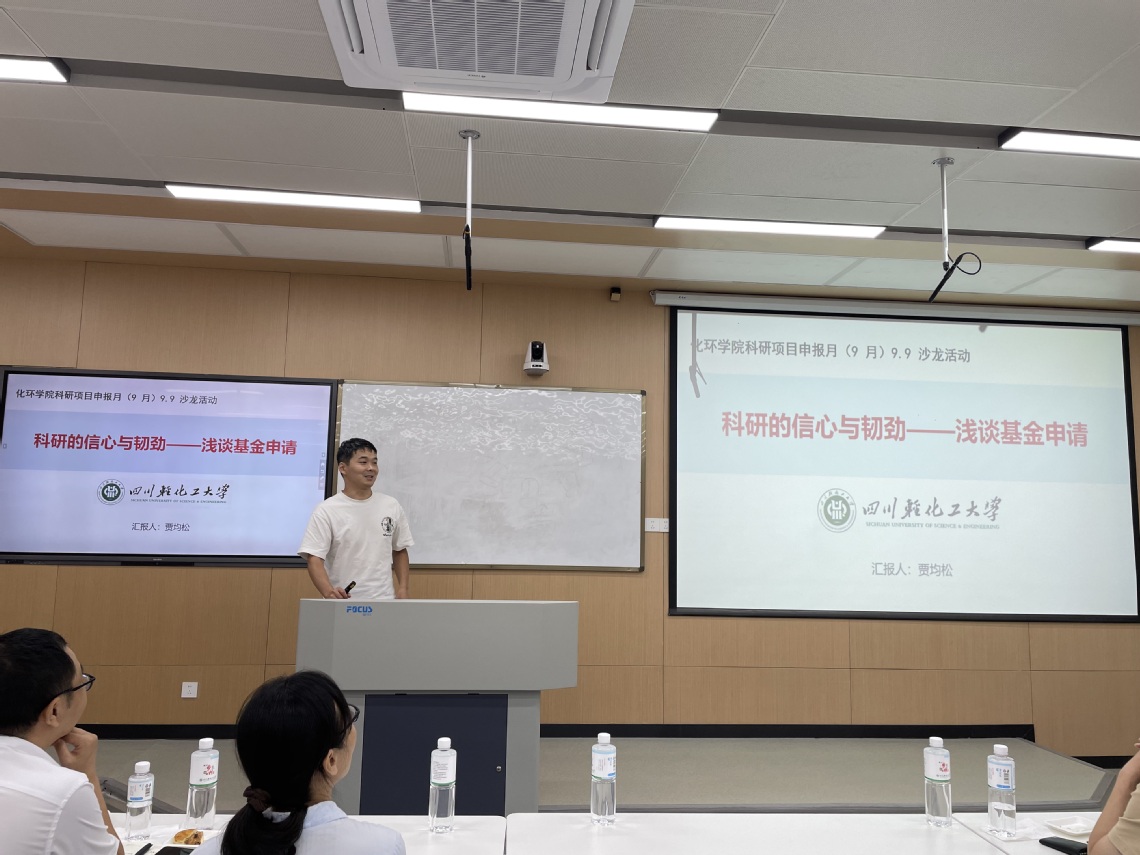 为做好学院科研工作,提升学院科研项目申报整体质量水平,激发科研项目创新研究思路,化环学院于9月9日下午14:30,在汇东校区厚德楼214教室举办科研项目申报专题沙龙活动。学院党委书记张国成,院长潘志成,副院长李玉龙、符宇航,学院学科带头人,青年博士教师及部分硕士研究生共计60余人参加了活动。