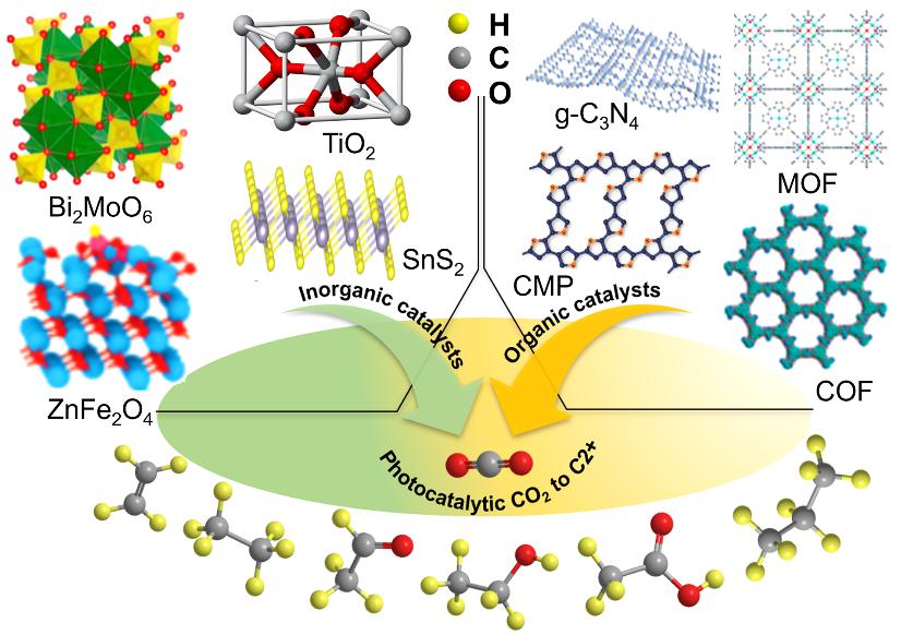 图2.非铜基材料光催化CO2制高附加值C2+产物的示意图。