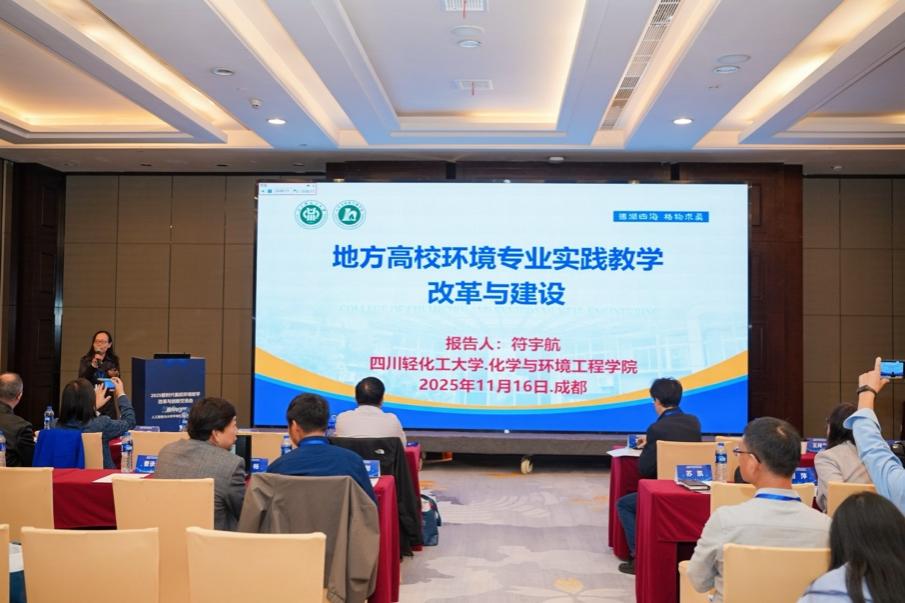 在分会场报告中,我院副院长符宇航教授应邀作了题为《地方高校环境专业实践教学改革与建设》的专题报告。报告结合四川轻化工大学化学与环境工程学院的办学定位与特色,深入分析了我校环境专业在实践教学环节面临的机遇与挑战,系统介绍了我院在实践教学体系构建、产教融合平台建设、学生工程实践与创新能力培养等方面的改革思路、具体举措与初步成效。符宇航教授的报告内容翔实、观点鲜明,引发了与会代表的广泛关注和热烈讨论,有效展示和宣传了我校环境专业在实践教学改革方面的探索与成果,提升了学校及学院在该领域的影响力。