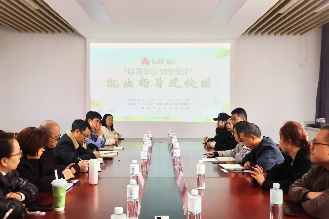为助力我院2026届毕业生更好地进行职业生涯规划,强化就业技能,提升就业核心竞争力,实现高质量充分就业,11月19日下午,我院和自贡市人力资源协会共同承办了由自贡市民政局主办的“职引未来青春逐梦”就业指导进校园活动。自贡市民政局社会组织科科长郑秀聪、人力资源协会秘书长刘传学、学院党委书记张国成、副书记刘红梅、学工办副主任董利军以及四川长征机床集团有限公司、自贡市东新电碳股份有限公司等10家企业HR参与了此次活动。