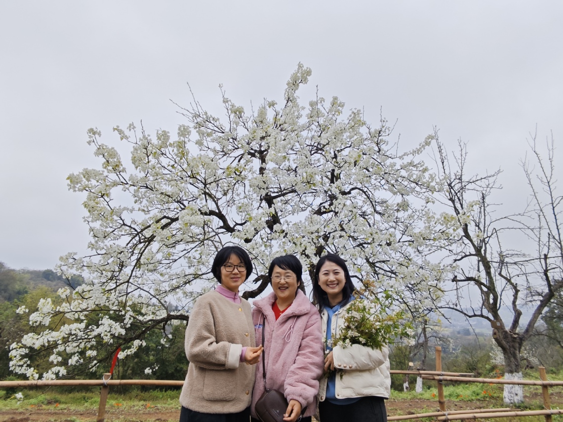 3月8日,学院分工会组织大家前往三多寨春游。女教职工们呼吸着新鲜的乡野气息,信步在曲折的山间小道,徜徉在雪白的梨花园中,感受着春天的脚步向着我们缓缓走来。在别开生面的鼓圈游戏中,女教职工们拿着不同的乐器围坐一圈,跟随主持人的引导,敲击出或悦耳动听或激昂高亢的节拍。大家或引吭高歌,或诵吟诗词,活动现场洋溢着一片欢声笑语。