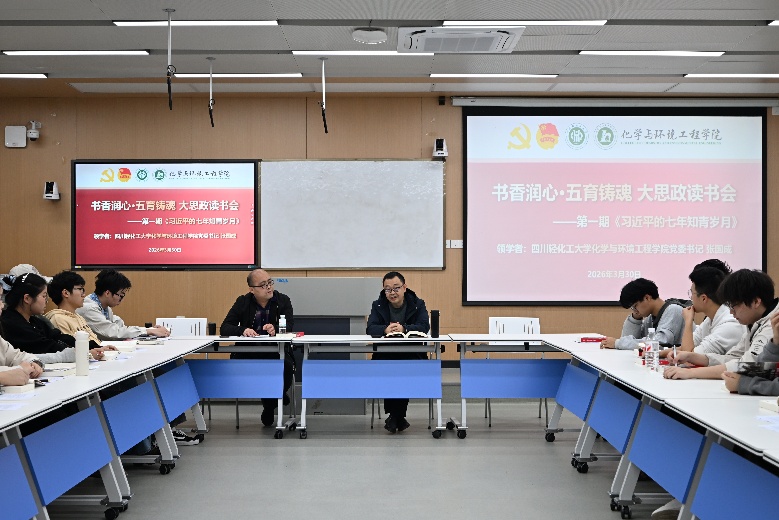 为深入贯彻落实立德树人根本任务,构建大思政教育格局,推进“五育并举”育人体系建设,3月30日晚,化学与环境工程学院“书香润心·五育铸魂”大思政主题读书会第一期活动在汇南校区厚德楼212活动教室成功举办。本期读书会聚焦《习近平的七年知青岁月》一书,通过领学分享、读书交流等形式,引导青年学子在书香中铸魂育人,在阅读中全面发展。