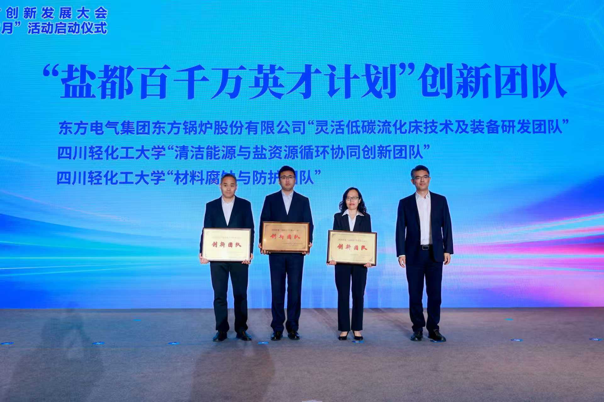 4月7日上午,“才耀盐都 智创未来”自贡人才创新发展大会暨第九届“盐都人才月”活动启动仪式举行。省委组织部副部长袁海晗,省委统战部副部长、省侨办主任朱永欧;自贡市委书记曾洪扬,市委副书记、市长石钢,学校党委书记张力,单位副书记、校长曾英出席。启动仪式上,与会领导为2026年度“盐都百千万英才计划”创新团队、领军人才和自贡市第十三批专家工作站授牌并颁发荣誉证书,符宇航、李鑫恒分别代表创新团队和领军人才上台领取奖牌和荣誉证书。