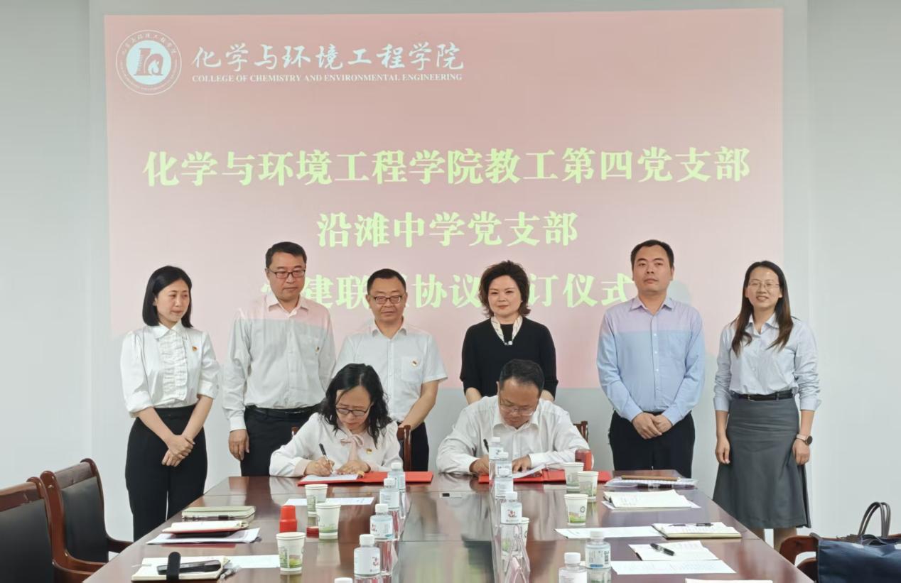 在全体参会人员的共同见证下,化环学院教工第四党支部书记符宇航与沿滩中学党支部书记巫茂刚代表双方签订《党建联盟协议书》。协议明确双方将在组织共建、科普教育、师生互访、课题共研等方面开展深度合作,标志着校地党建联建迈入制度化、常态化轨道。