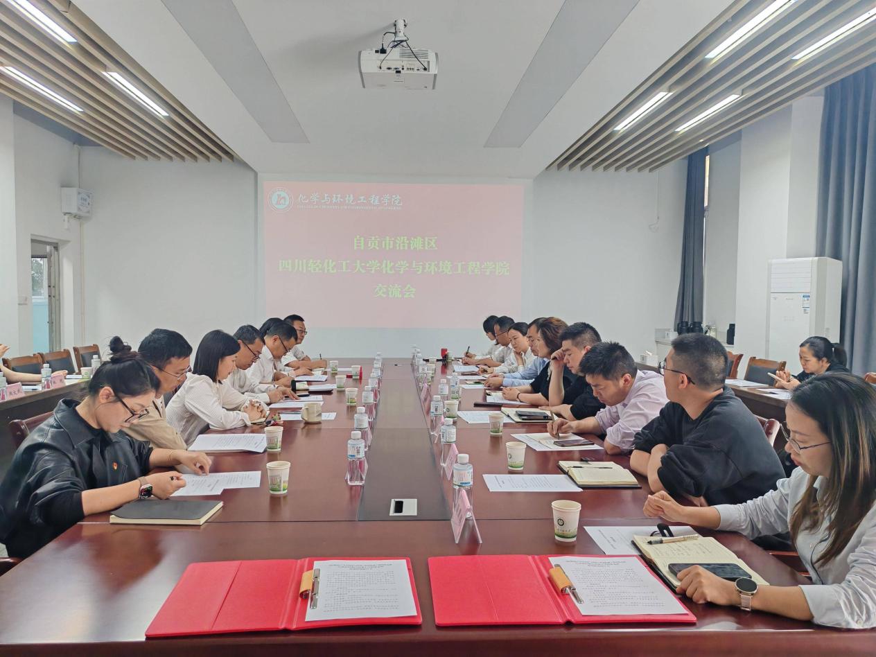 为深化校地协同、推动党建与业务深度融合,深入推进“强国行”行动开展,2026年4月23日下午,四川轻化工大学化学与环境工程学院与自贡市沿滩区相关部门、沿滩中学在汇东校区第一实验楼213会议室举行党建联建暨校地合作交流会。沿滩区科协、沿滩高新技术产业园区、区教体局、区就业创业促进中心、区委组织部、区科技和经信局等相关单位负责人,沿滩中学校领导,四川轻化工大学人事处处长郑兴文、化环学院党委书记张国成、副书记刘红梅、副院长暨教工第四党支部书记符宇航及支部党员代表共同参会。
